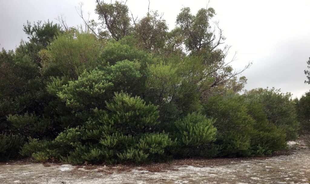 Let’s scale up. Sydney Golden Wattle is a woody weed that occupies a lot of volume. The one in the photo occupied about 288 cubic metres. In the adjacent photo, you can see a coastal jarrah freed from that wattle. I estimate there is now space for all these native species to occupy that same volume: two sheoaks, five banksias, three melaleucas, 16 kangaroo paws, eight orchids and 54 sundews.
